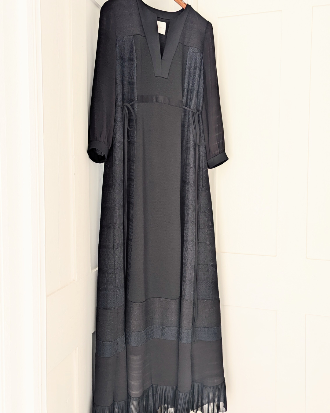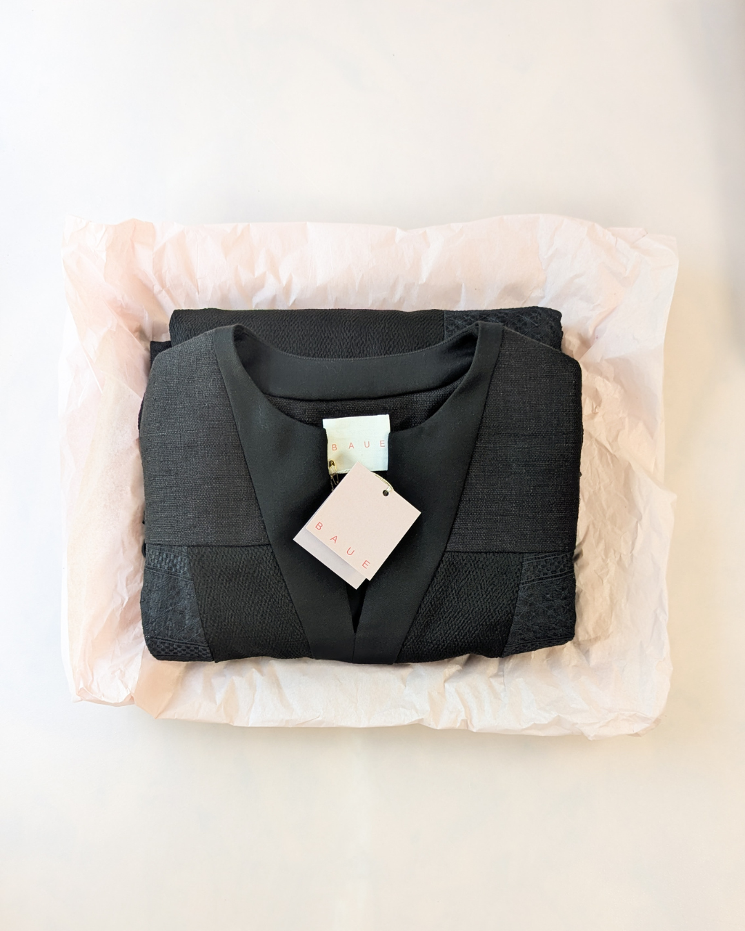 Len is a producer working in climate storytelling, so choosing a dress with sustainable luxury credentials was essential. Already a Baue customer and owner of an Anita dress, when Len learned her film would premiere at TIFF, she asked if I could create a custom version especially for the red carpet.