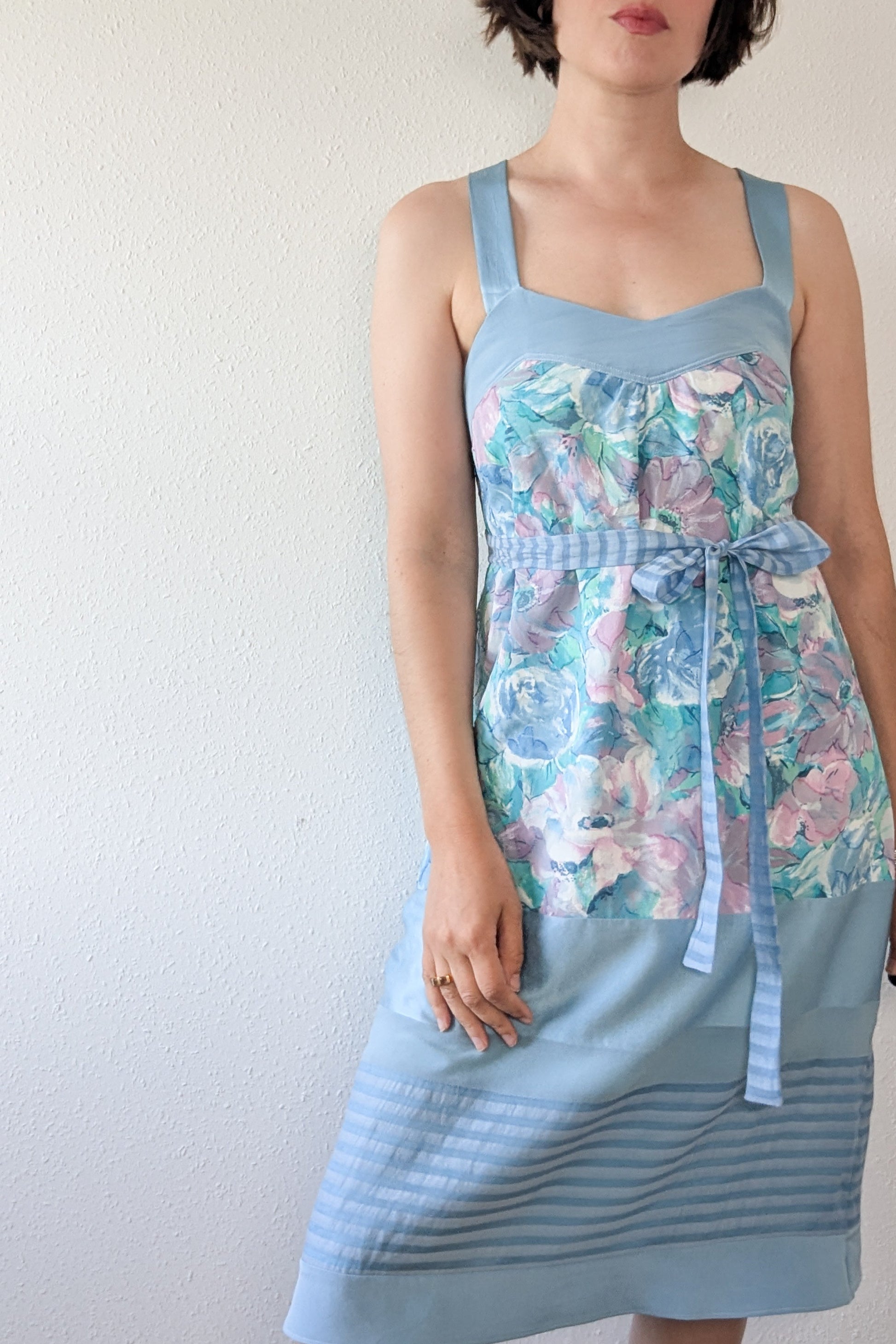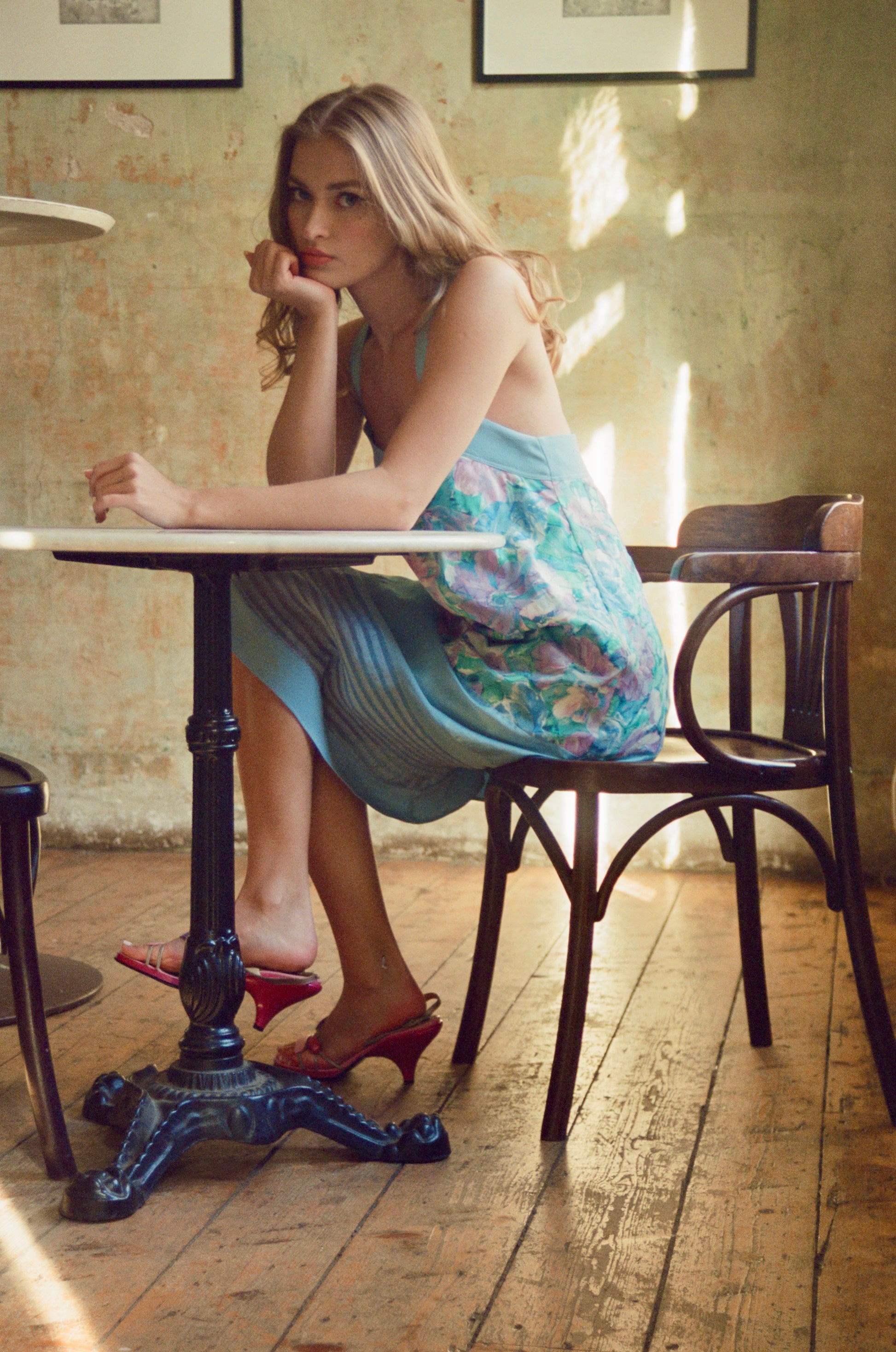 An easy yet striking piece for warm, unhurried days, the Mia Dress is cut from airy printed voile with delicate silk accents. Inspired by the quiet glamour of 1960s European summers, it features wide crossover straps, a gentle V-neckline, and subtle gathering through the bust for a flattering fit. Lined for comfort and modesty, while the skirt falls to the knee for easy, graceful movement. Wear it for sun-drenched strolls, garden parties or summer café dates.