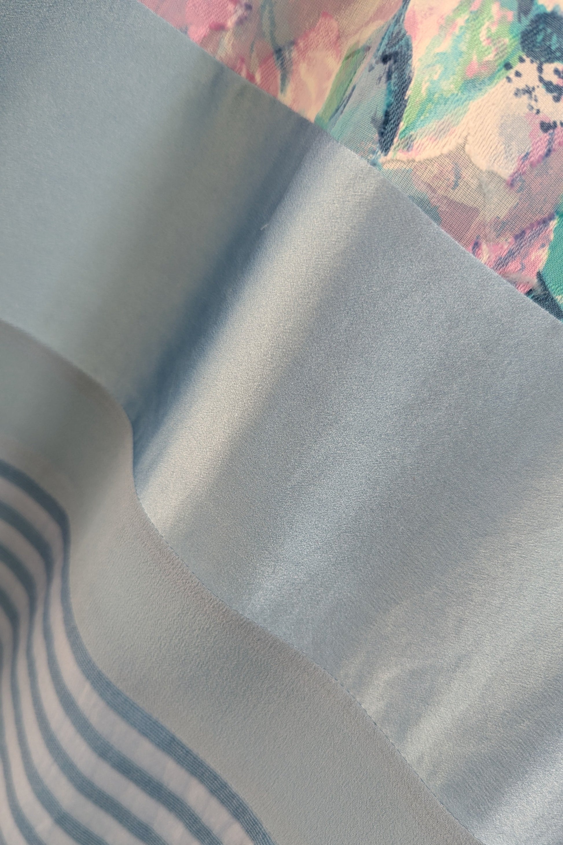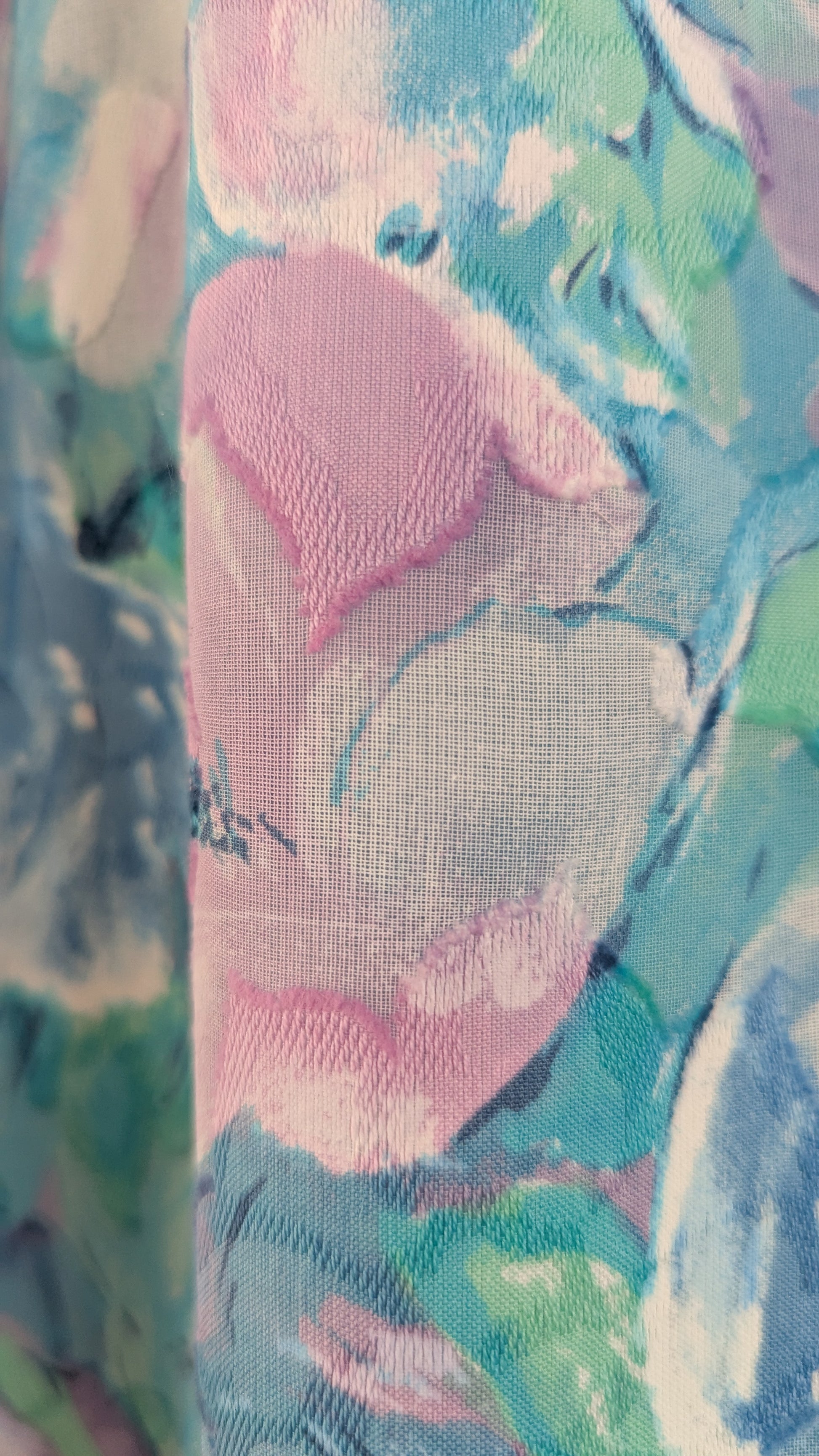 - Floral voile. Mixed fibres. (Hands up, I'm not 100% sure. Its an end of roll piece which came with no content info, I believe its a mix of synthetic fibres)